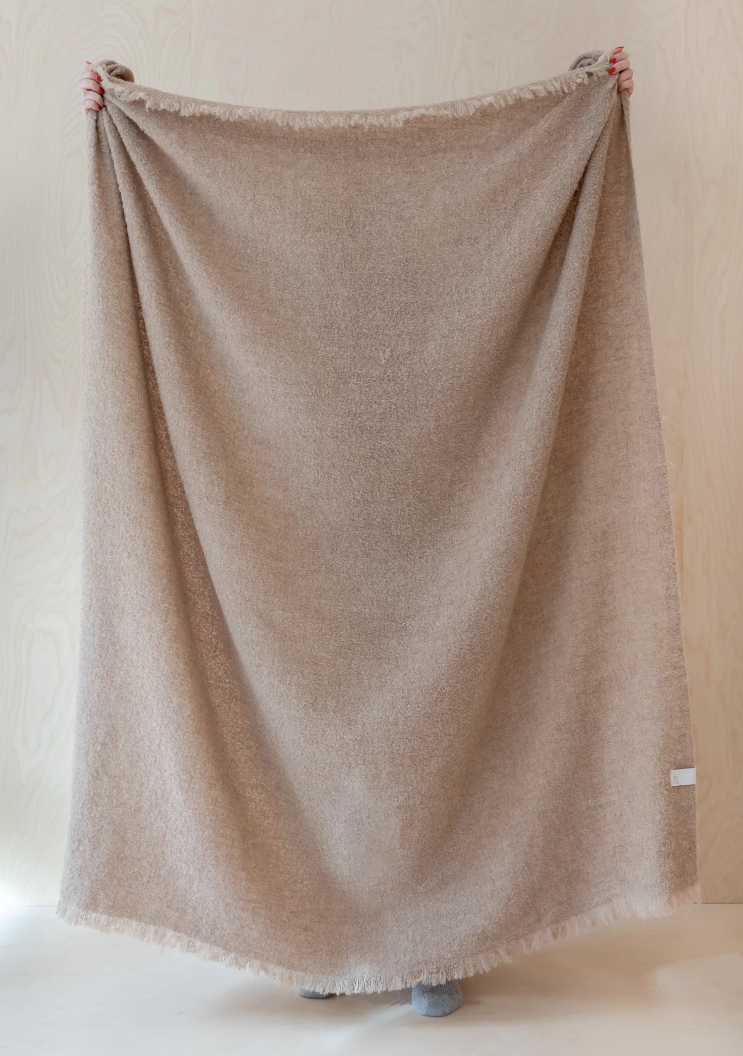 This super soft TBCo Blanket is woven from undyed fibres, meaning the gorgeous colour comes completely from the natural fleece of the alpaca. No dye means less water and energy consumption, so it’s just as nice for the planet as it is for your home. Traceable Peruvian yarn, famous for its durability and warmth, is combined with 11% recycled nylon for a sumptuous bouclé texture.