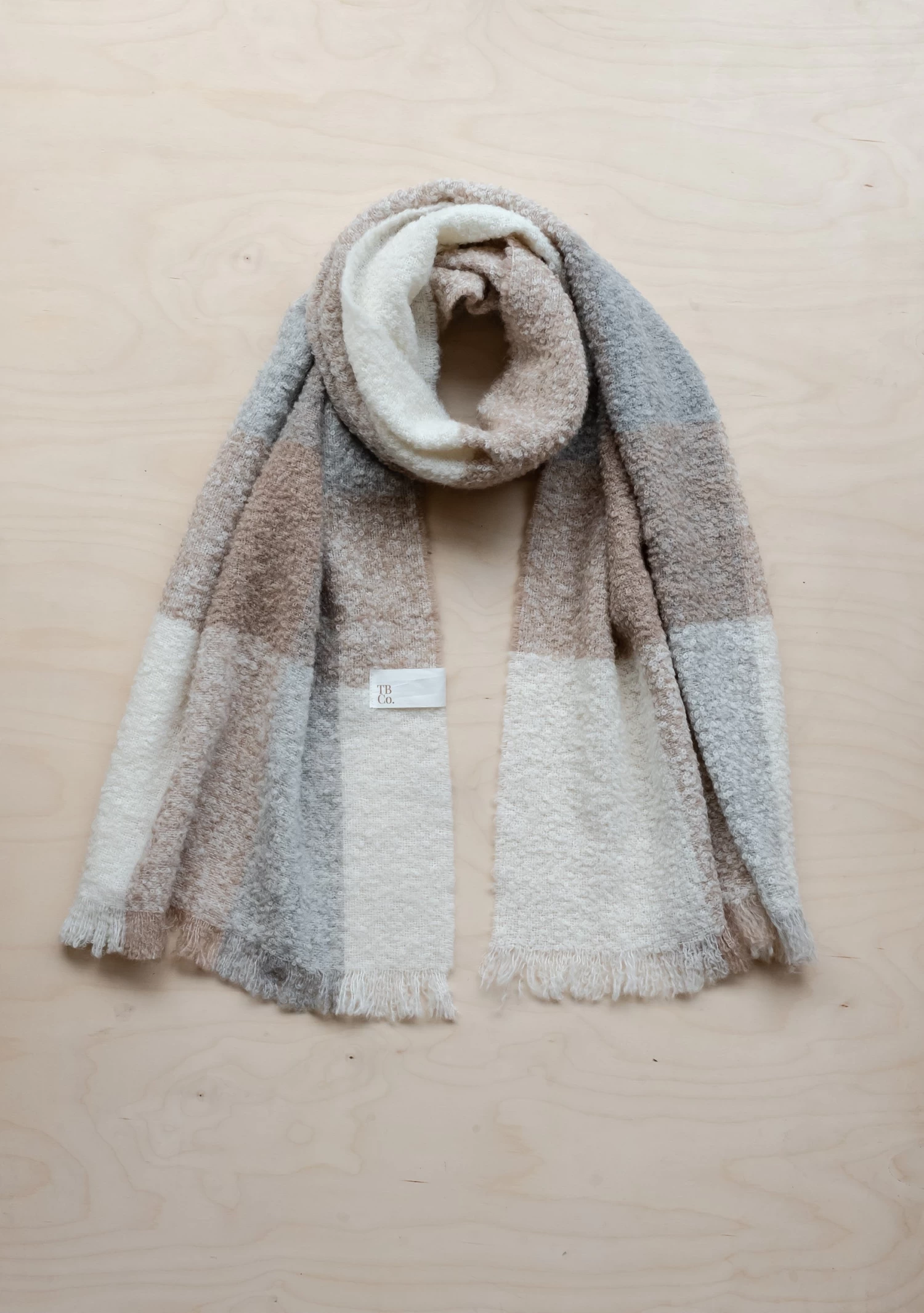 This super soft TBCo Oversized Scarf with fringe is woven from undyed fibres, meaning the gorgeous colour comes completely from the natural fleece of the alpaca. No dye means less water and and energy consumption, so it’s just as nice for the planet as it is for your wardrobe. Traceable Peruvian yarn, famous for its durability and warmth, is combined with 11% recycled nylon for a sumptuous bouclé texture.