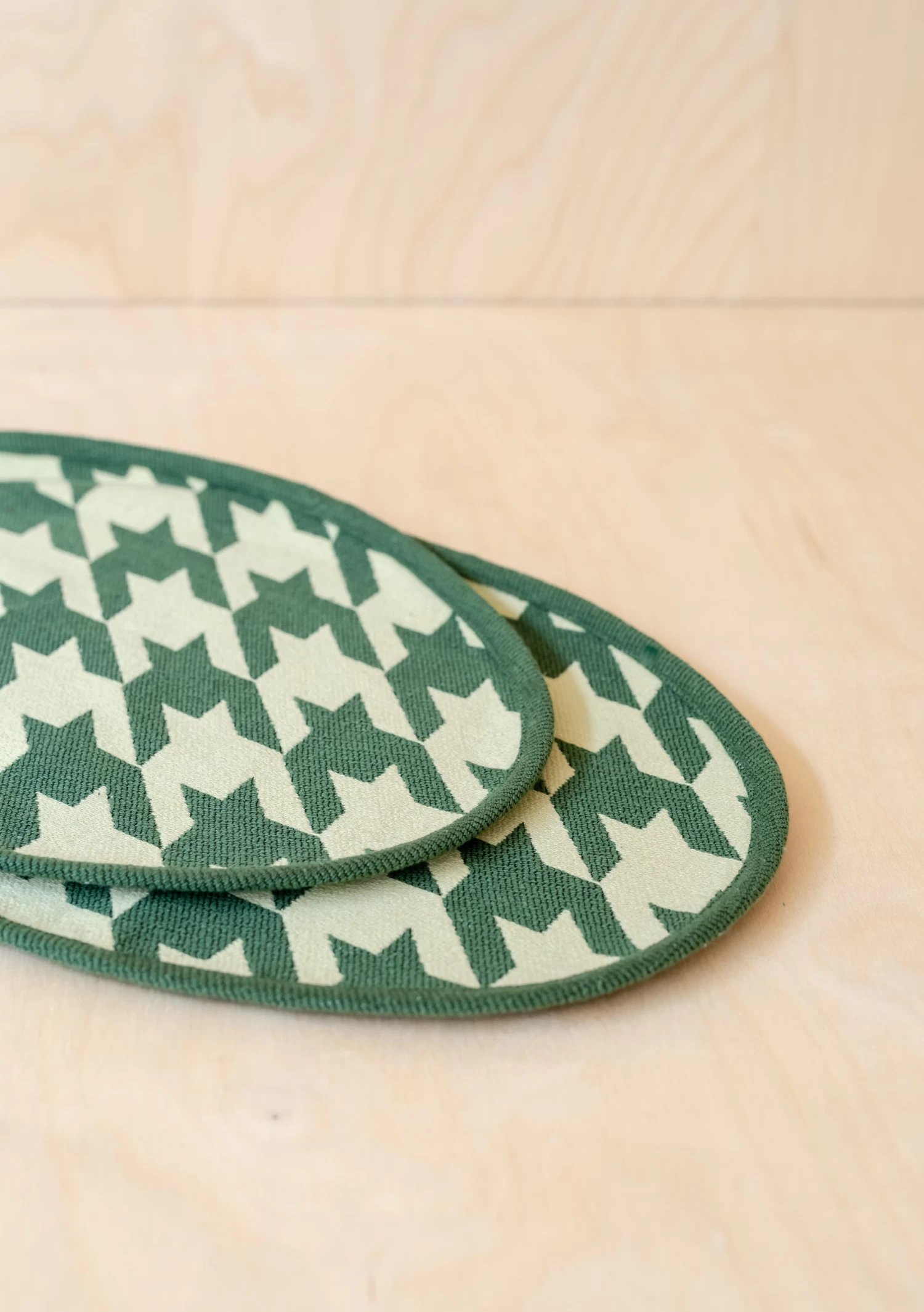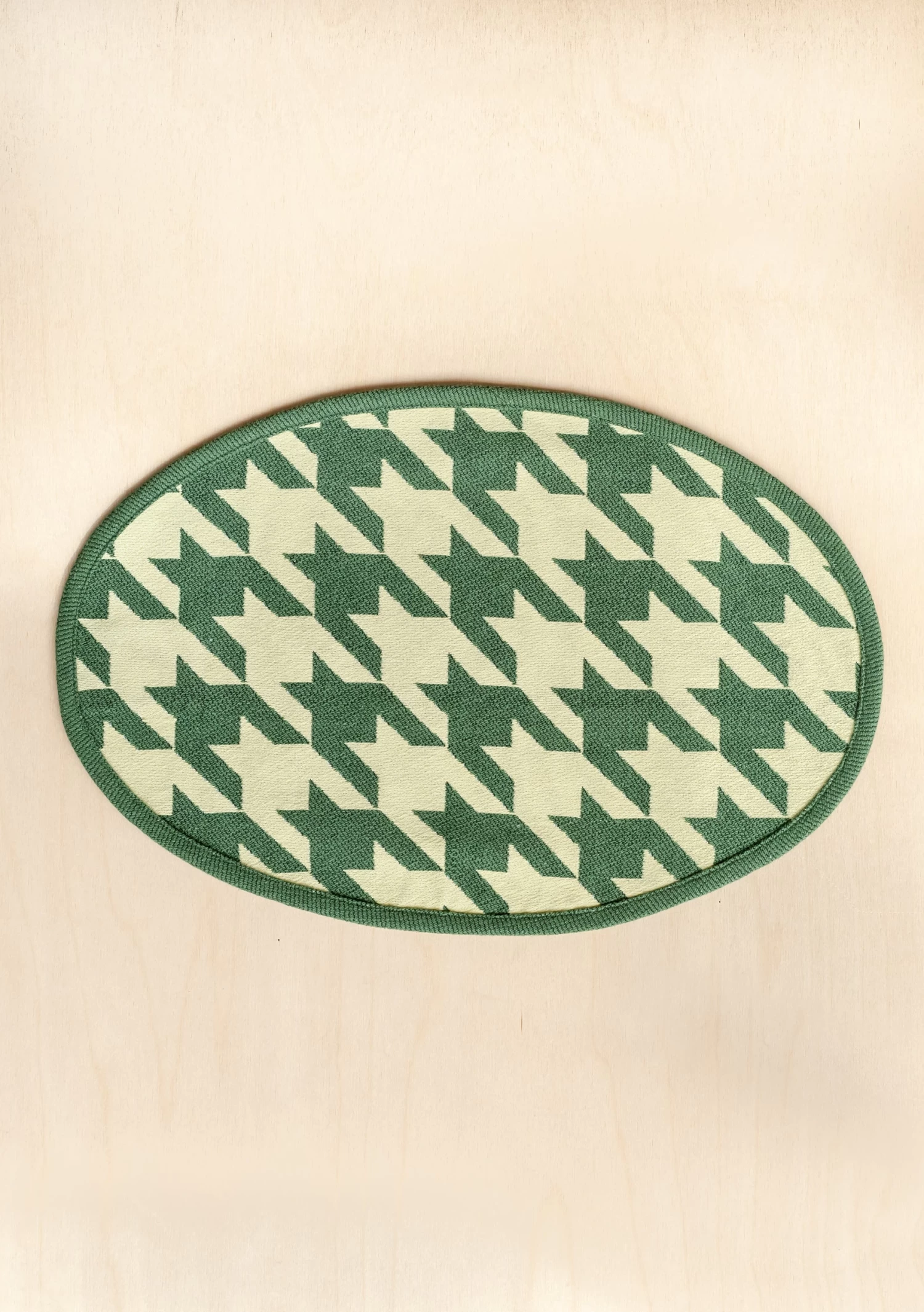 Featuring an olive and green houndstooth print, this cotton placemat ads a touch of fun to every meal.