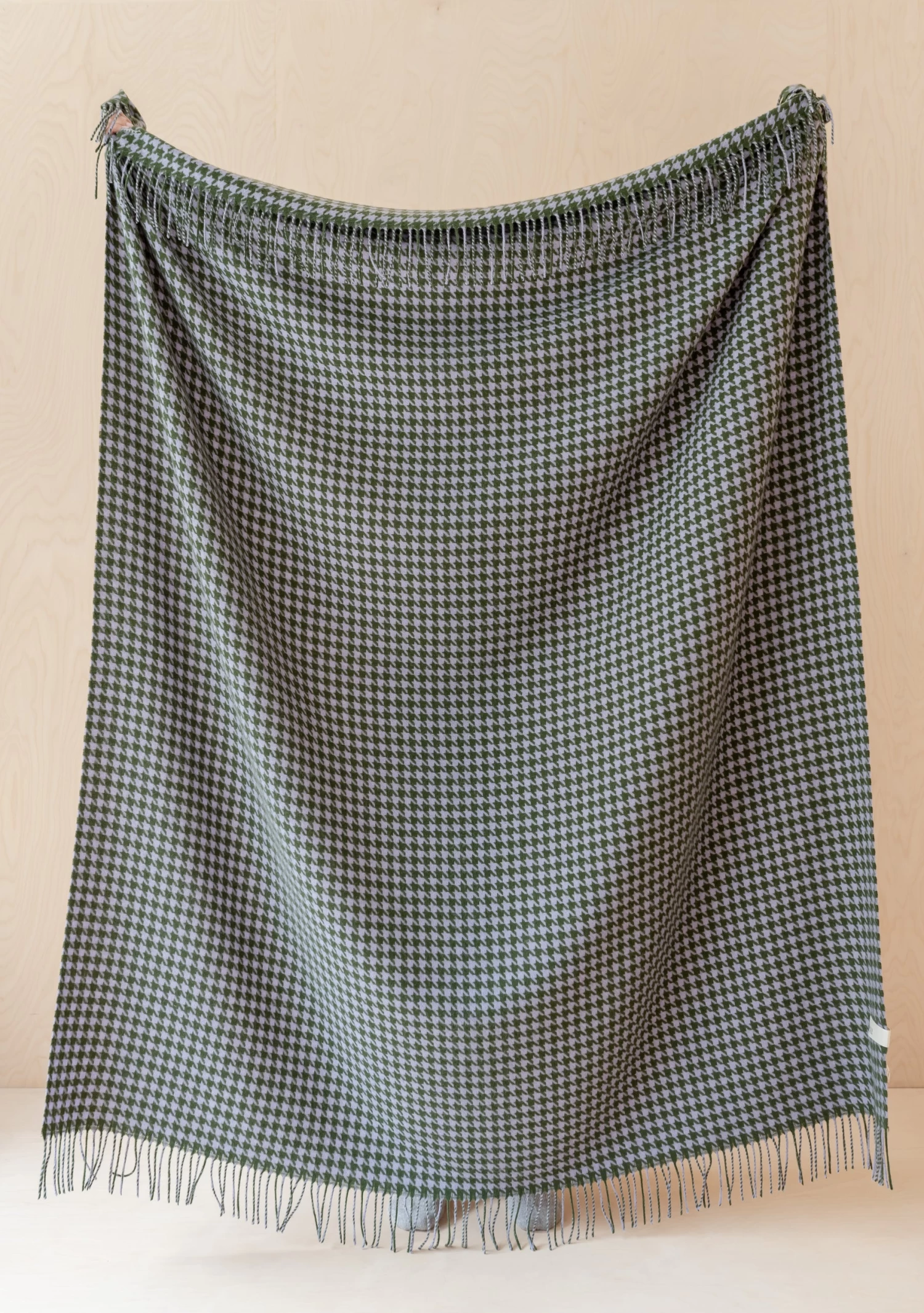 Featuring a mix of garden green and soft lilac in a modern houndstooth design, this fringed lambswool blanket offers a cocoon of warmth. Fold it over a chair or drape it over a bed to add colour and comfort to any room. The unique crimps in the individual lambswool strands create air pockets that retain heat while repelling moisture, keeping you warm when you’re cool and cool when you’re warm for a more restful night’s sleep. Along with being a naturally insulating, breathable and hypoallergenic textile, it’s beautifully soft. Doesn’t get much better than that.