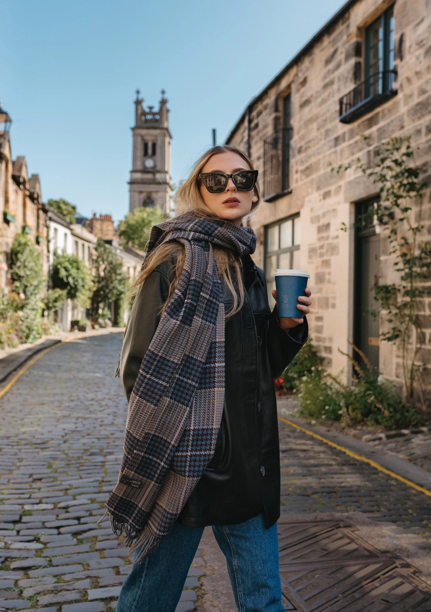 This TBCo Oversized Scarf with fringe is woven from soft lambswool.