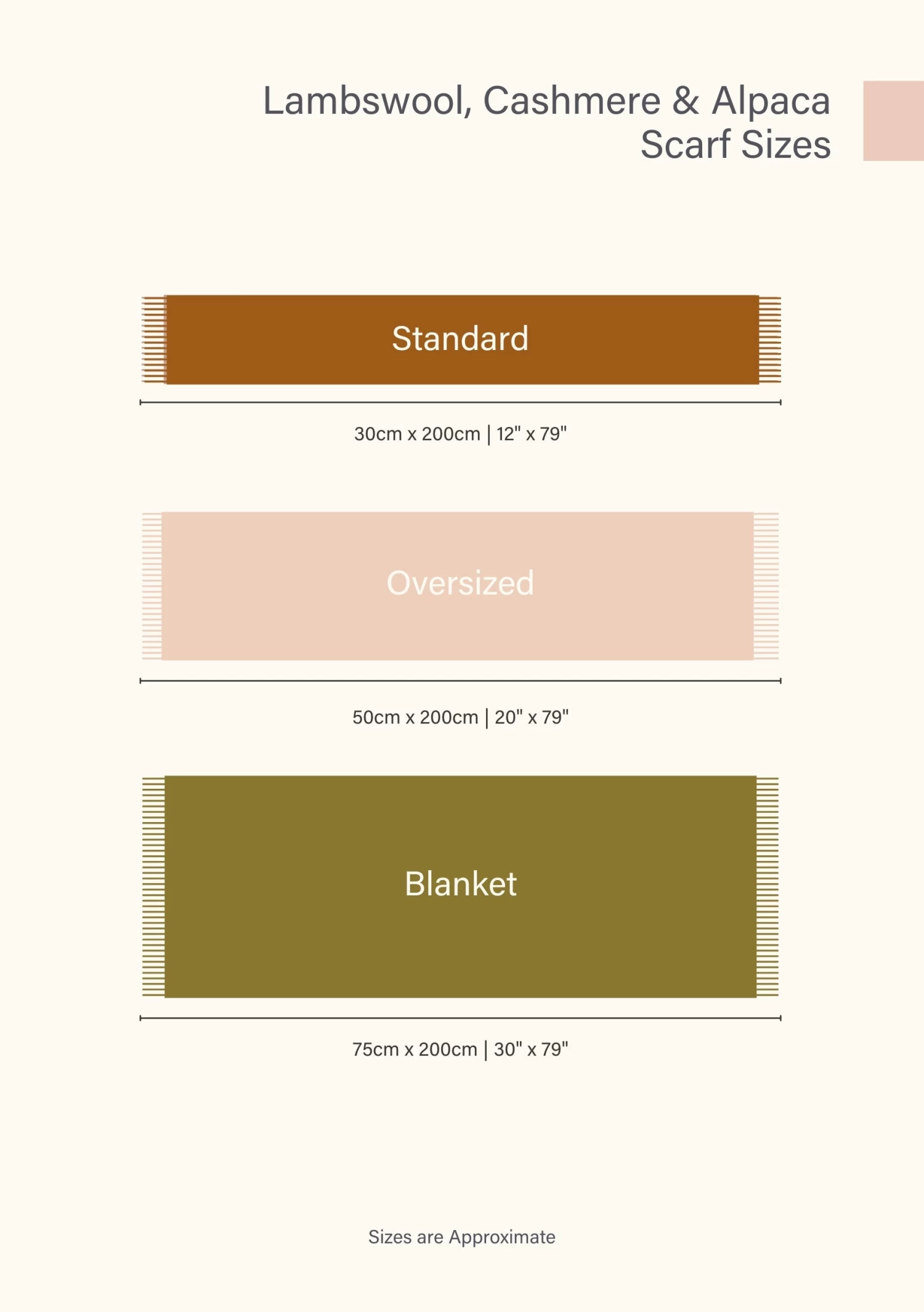 Size | 12″ x 79″ / 30cm x 200cm, including fringing*